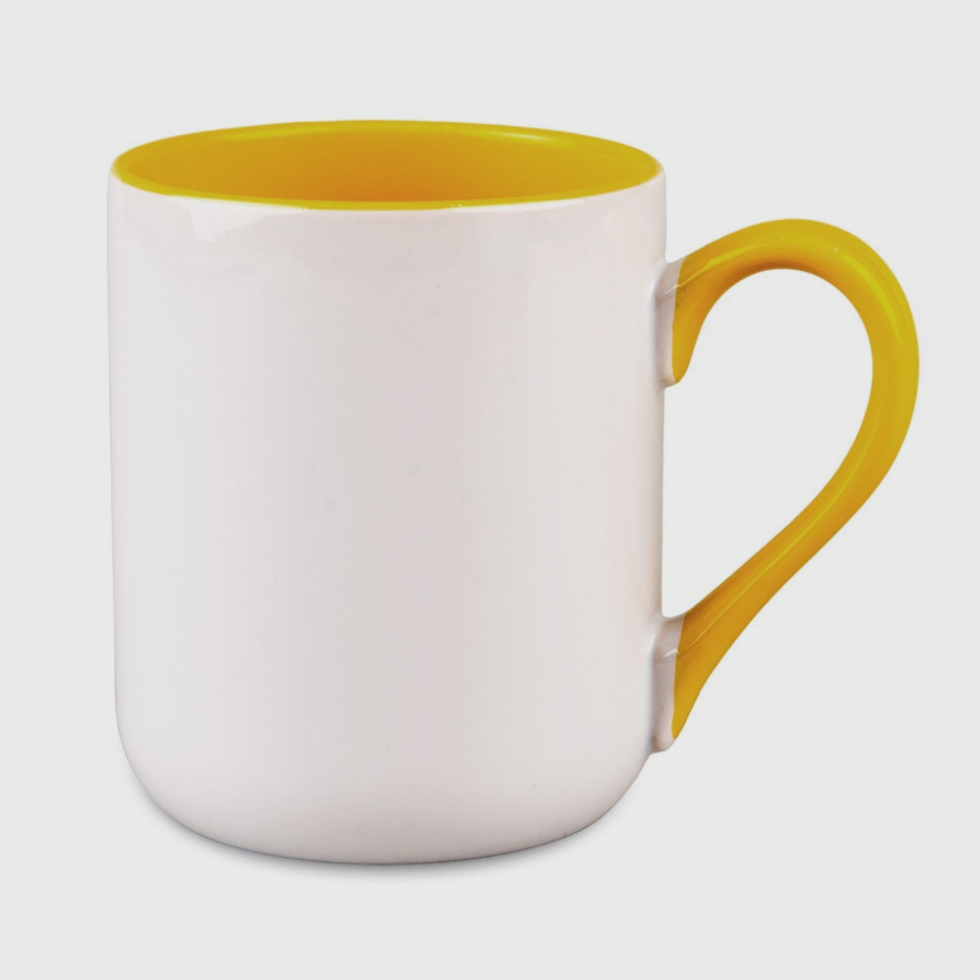 Kubek Coffee 330ml Combo – uchwyt i środek żółty. Ceramiczny kubek do sublimacji z polem nadruku 200×80 mm. Idealny na prezent lub jako kubek firmowy.