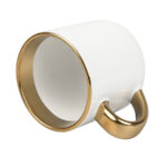Elegancki kubek ceramiczny 450 ml ze złotym uchem, przeznaczony do nadruku metodą sublimacji. Doskonały jako prezent personalizowany lub gadżet firmowy z logo.