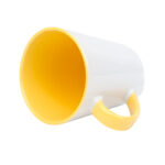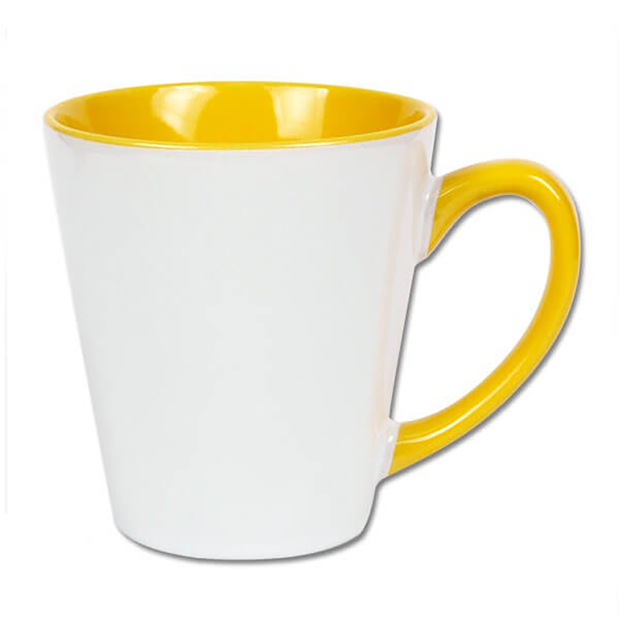 Kubek Latte biały z żółtym środkiem i uchem 300 ml. Kubek ceramiczny do nadruku sublimacyjnego – elegancki i trwały.